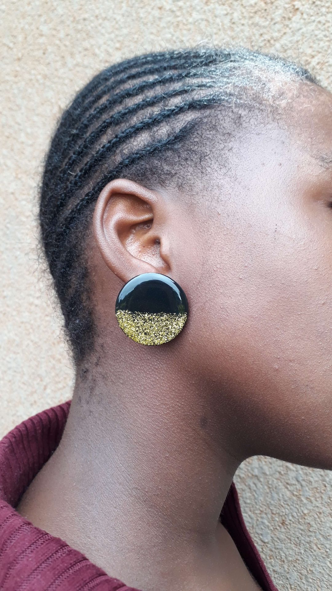 These black and gold hand painted ear studs are elegant and light weight. They boast a gold bottom sparkle that gives an elegant finish to the ear studs. Very stylish, perfect for a classic look!
